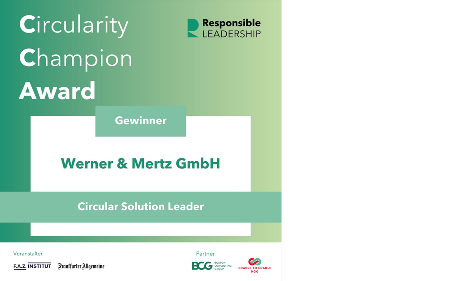 2024 folgte dann der Circularity Champion Award. In der Kategorie „Innovative Lösungen“. zeichnete die Jury Werner & Mertz für den Standbodenbeutel als Circular Solution Leader aus. Der Award, initiiert von der Cradle to Cradle NGO und dem F.A.Z.-Institut, würdigt Unternehmen für innovative Ansätze und herausragende Leistungen in der Kreislaufwirtschaft.