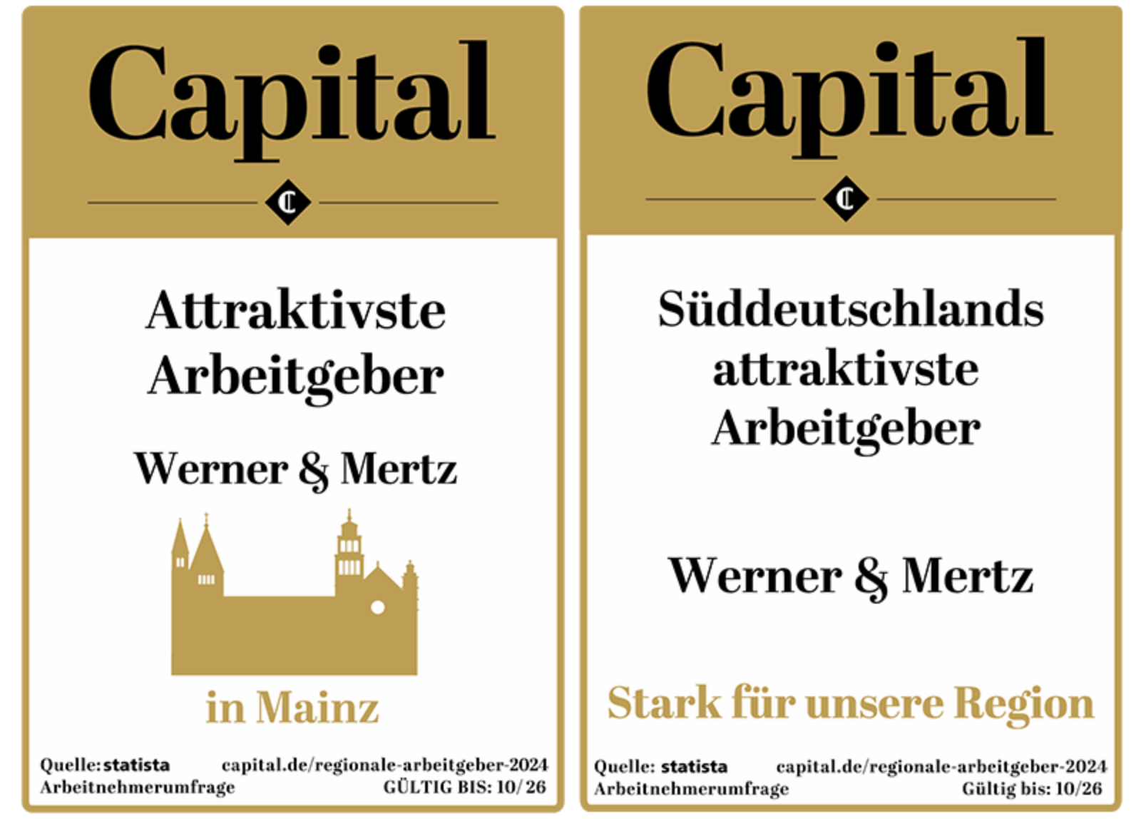 Werner & Mertz zählt auch im Jahr 2024 wieder zu den attraktivsten Arbeitgebern in Mainz. Diese Auszeichnung verlieh uns das renommierte Wirtschaftsmagazin Capital, basierend auf den Ergebnissen der Befragung von 9.000 Arbeitnehmer*innen durch das Statistikportal Statista.